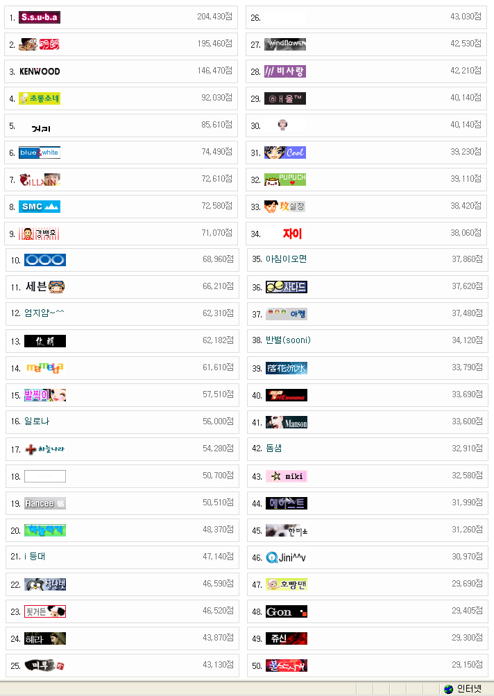 그냥 아무생각없이 순위를 클릭 해 보니